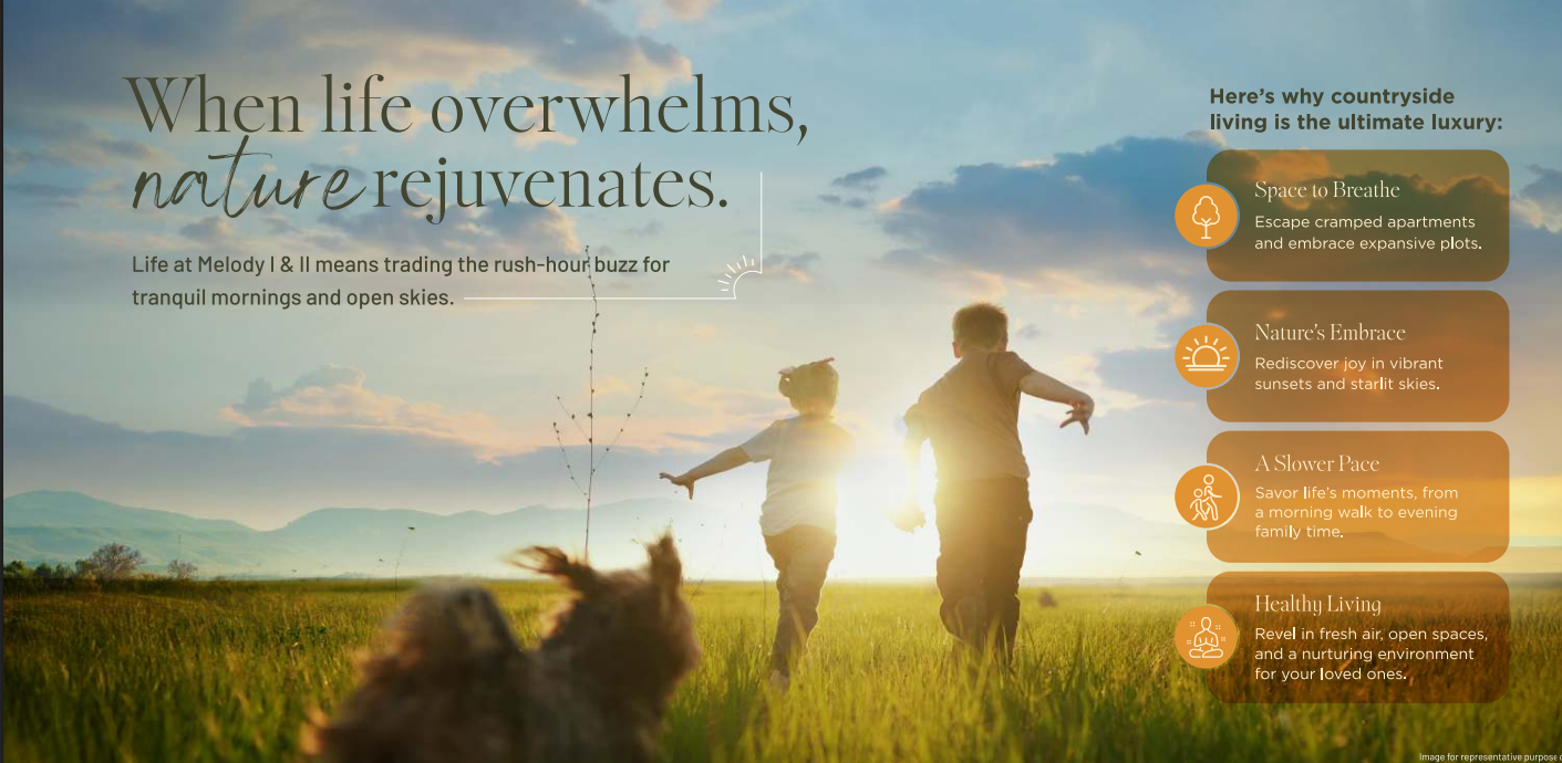 Melody I & II offers bungalow plots (sizes between 2,400 sq. ft. to 6,000 sq. ft.).