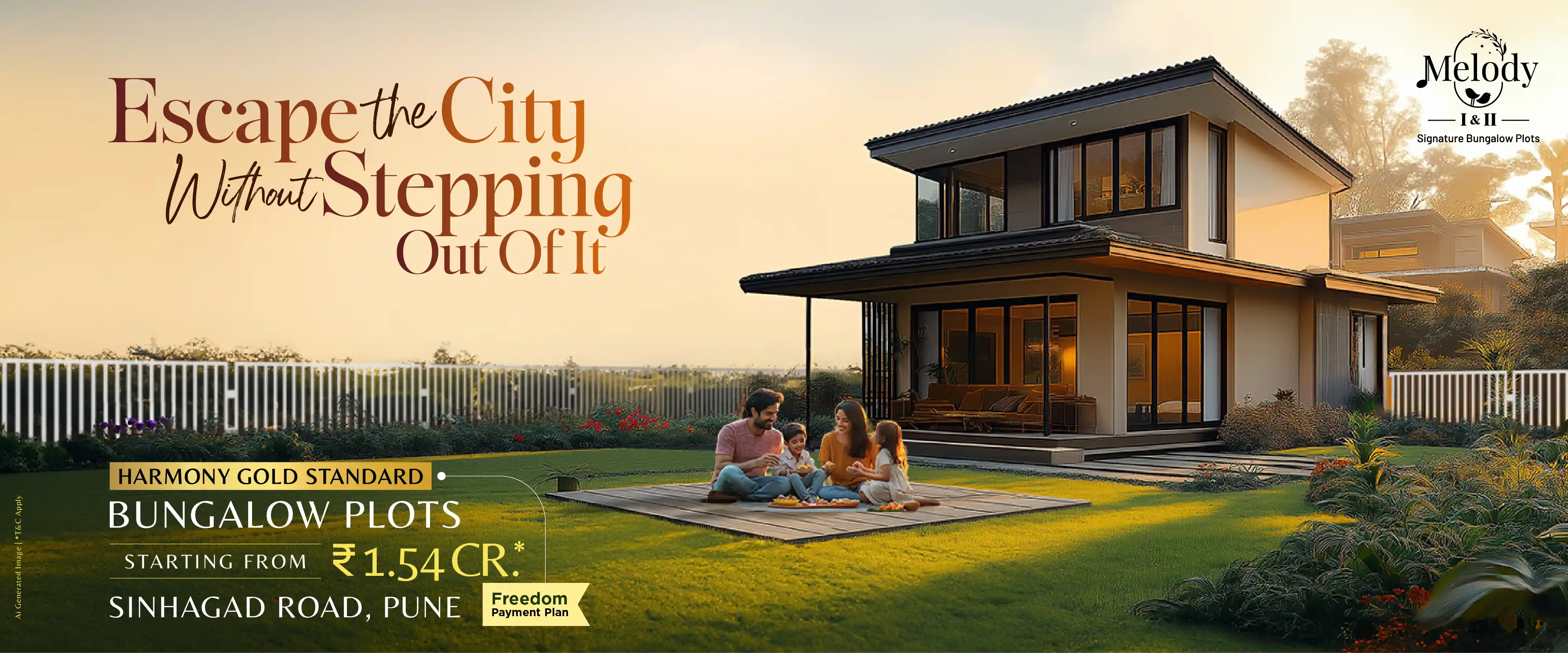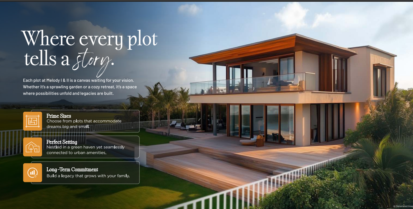 Melody I & II offers bungalow plots (sizes between 2,400 sq. ft. to 6,000 sq. ft.).