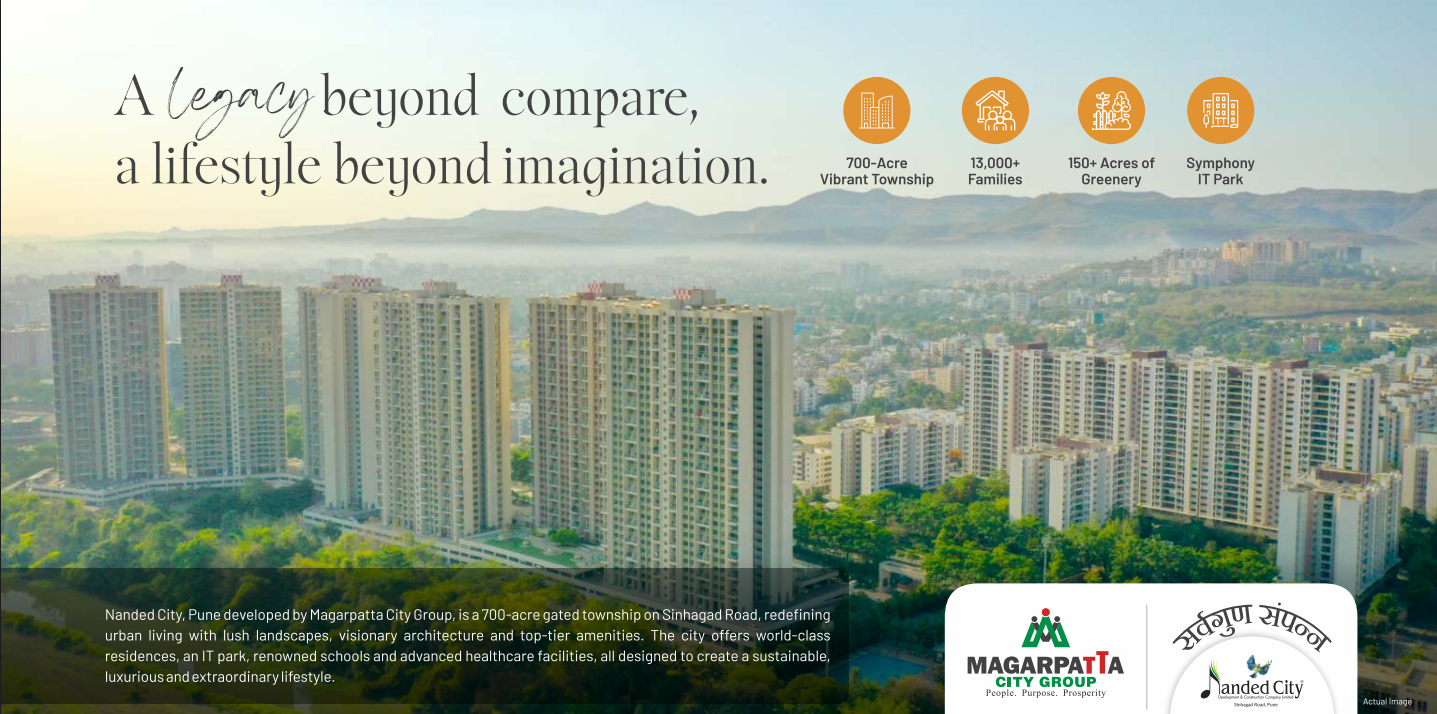 Nanded City is one of Pune’s biggest, most successful townships (built by Magarpatta Group).